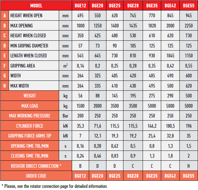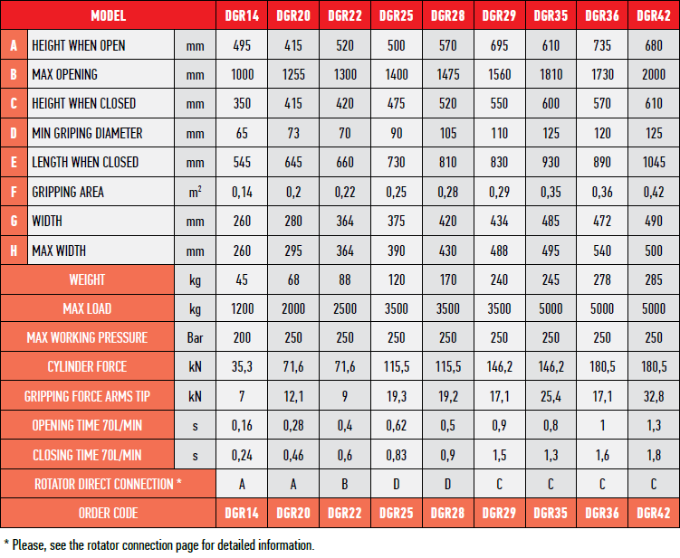 | Minimum gripdiameter | 100 mm* | 100 mm | 122 mm | 136 mm* |
