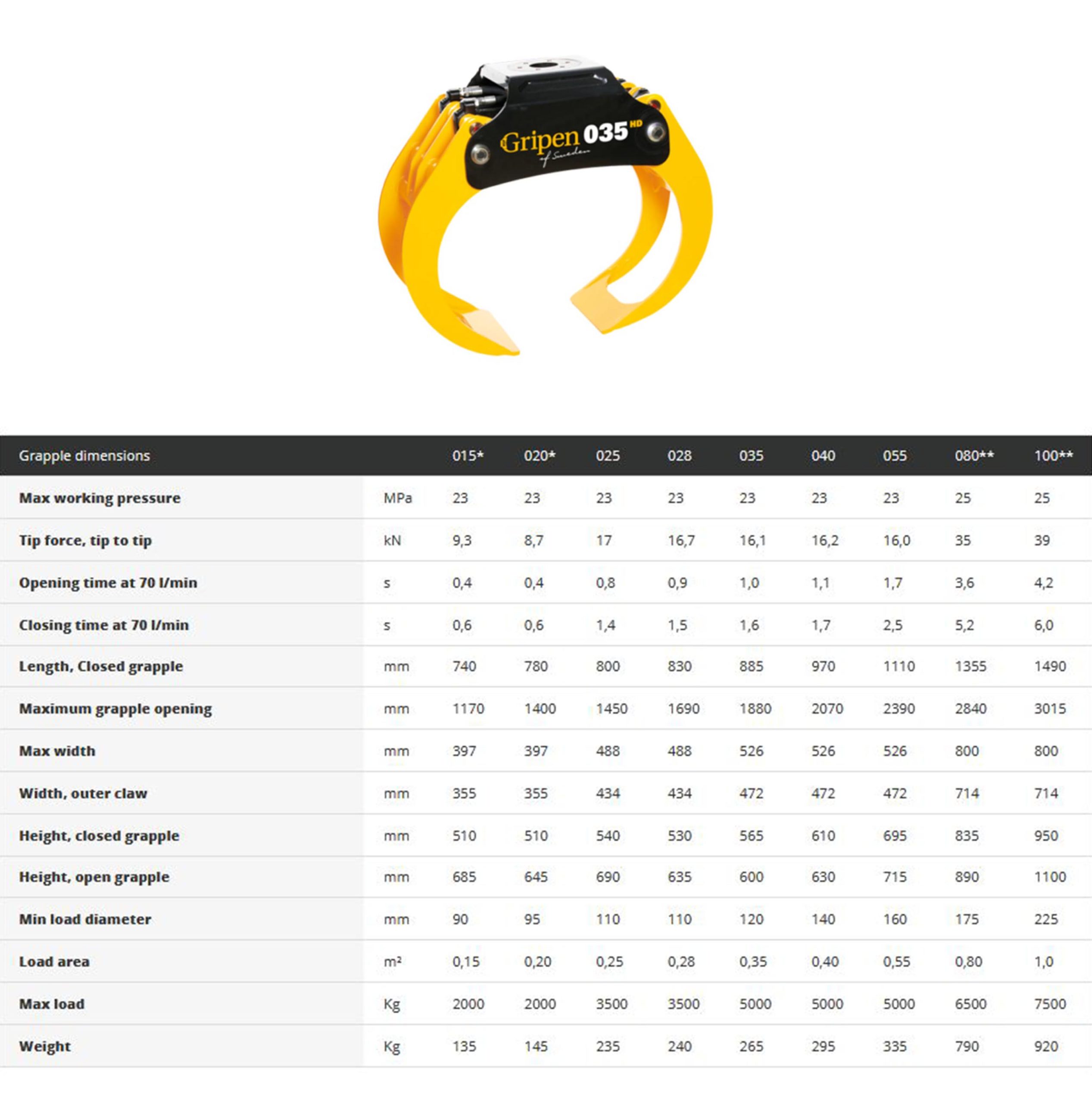 | Minimum gripdiameter | 100 mm* | 115 mm | 122 mm | 136 mm* |