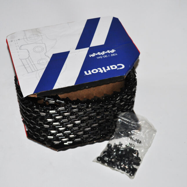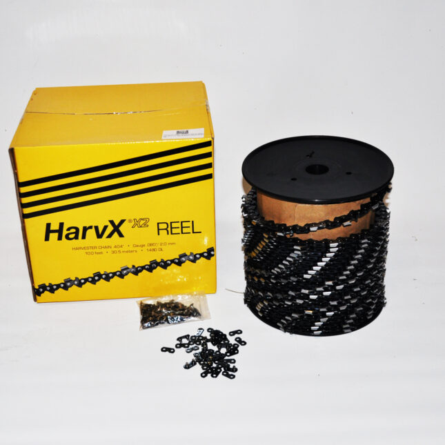 Łańcuch tnący do harwestera Carlton w rolce –1700 zł netto 30,5 metra 1480 ogniw / 404-2.0 Harv X2 w rolce – 1400 zl netto 30,5 metra 1480 ogniw /404-2.0 Łańcuchy gotowe na różne długośći – od 64 do 99 ogniw Łancuch 3/4″ -HX34-58 – 350 zł netto szt WRÓC